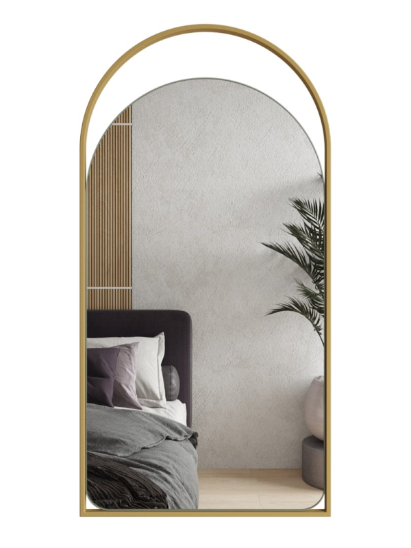 Дизайнерское арочное настенное зеркало Glass Memory Artful в металлической раме золотого цвета в Жигулевске